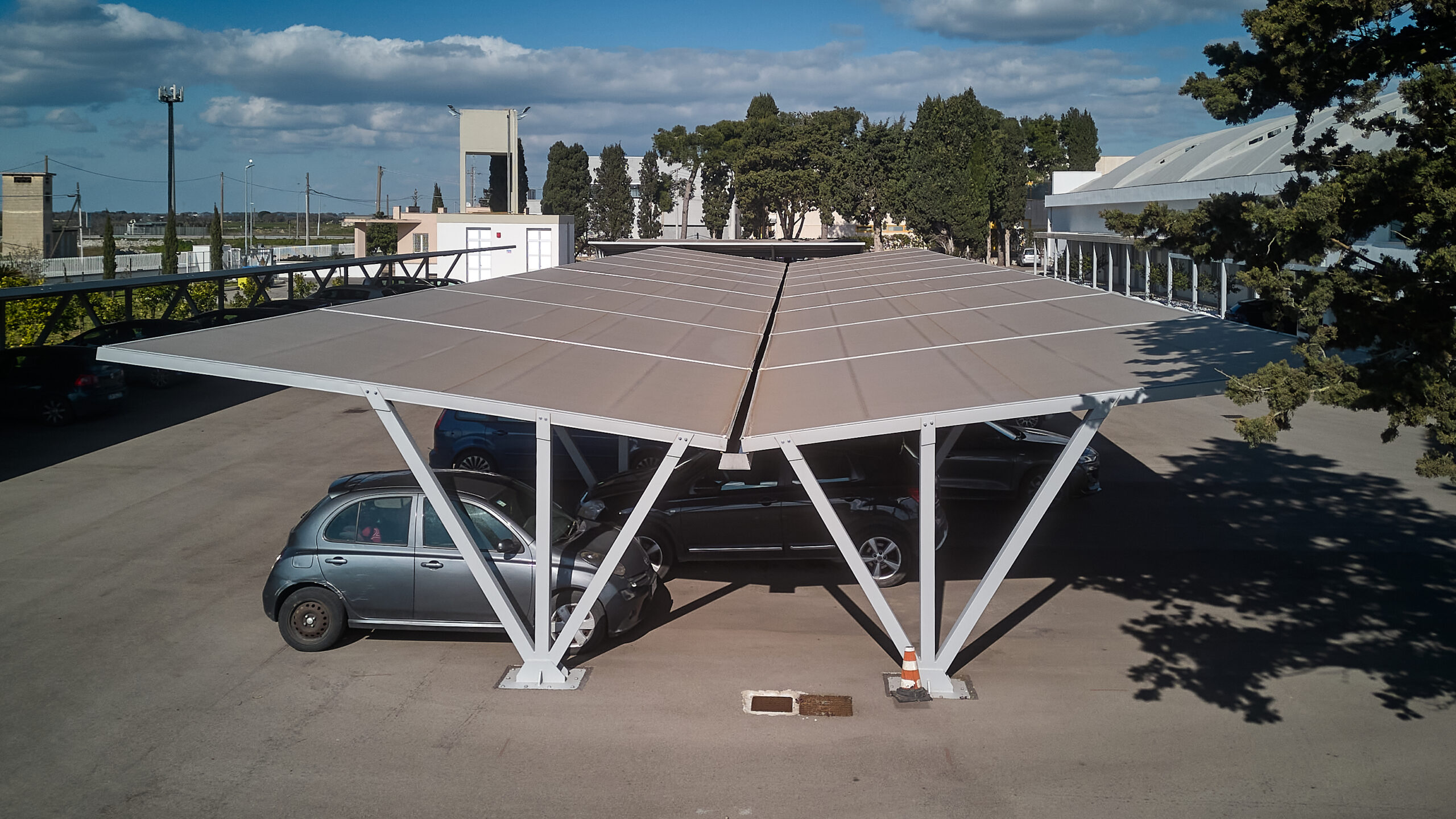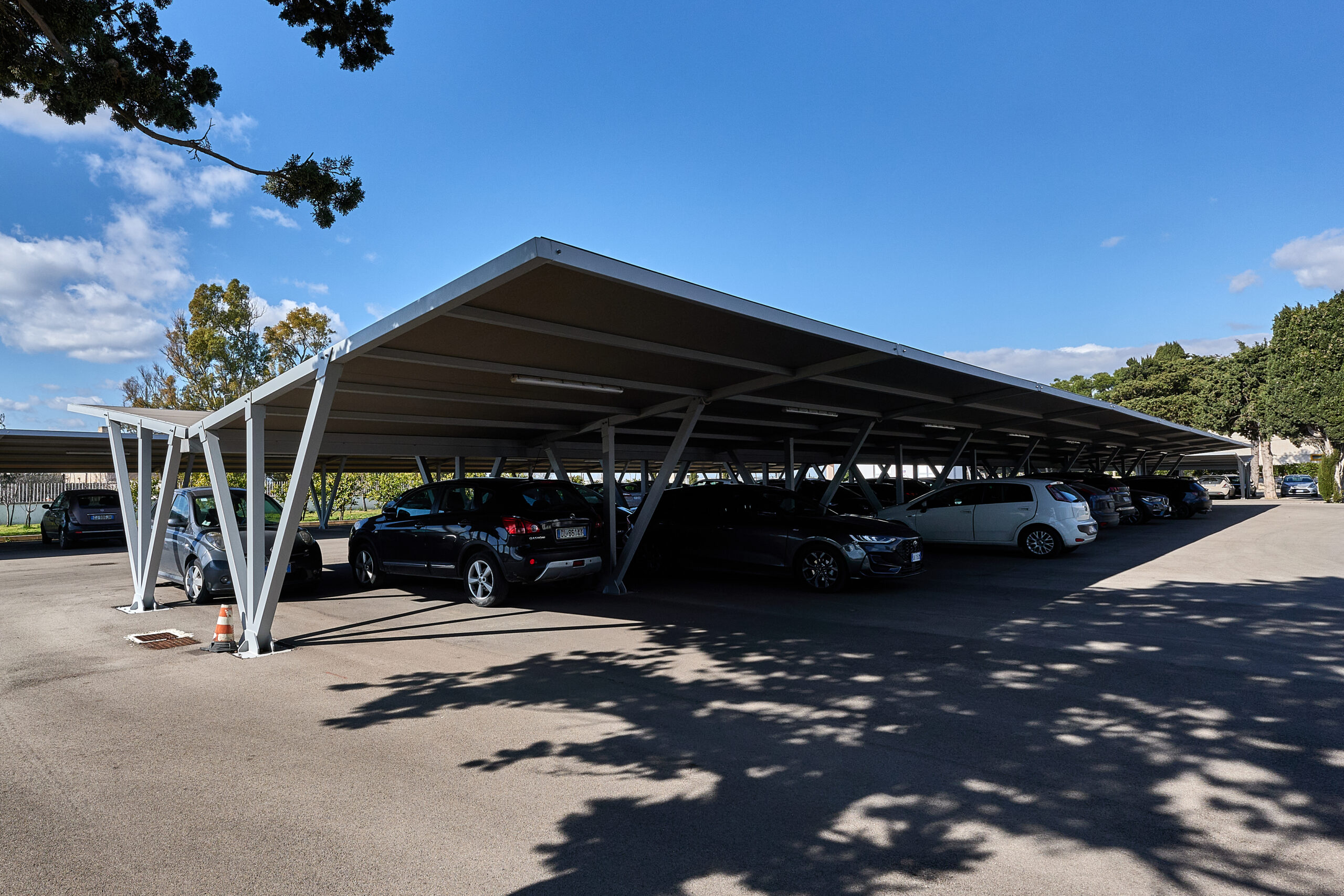 La struttura modulare HORIZON Parching, realizzata con acciaio zincato a caldo, offre la soluzione perfetta per parcheggi di ampie dimensioni.